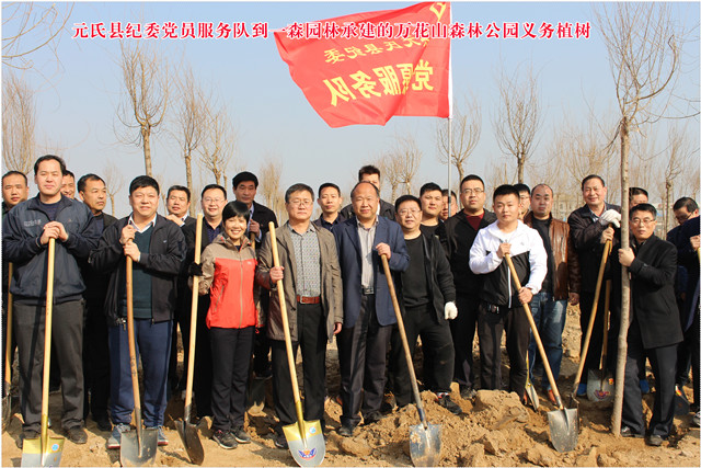 2018年324日上午,县纪委钱聚平副书记带领纪委党员干部60多人到万花山森林公园参加义务植树活动。苏阳乡书记康平、县农林畜牧局局长李树国及一森园林公司基地负责同志参加了这次活动。此次活动共栽植金叶榆1500株。